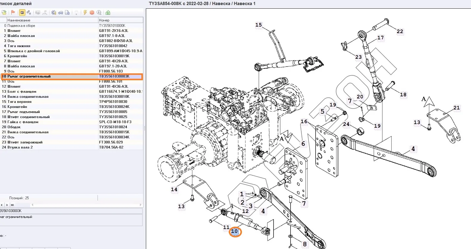 | LOVOL | TY3SA854-008K | 2022-02-28 | Навеска 1 | Рычаг ограничительный |