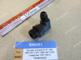 Штуцер угловой 9/16"-18M UNF/JIC х 3/4"-16M UNF/ORB отверстие 1/32" (9510 Санфлауэр)
