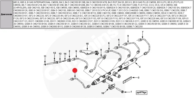 | Cummins | 6ISLe-400-40 (Repto) | 2013 | Plumbing, Injector | Трубопровод подачи топлива к форсунке |