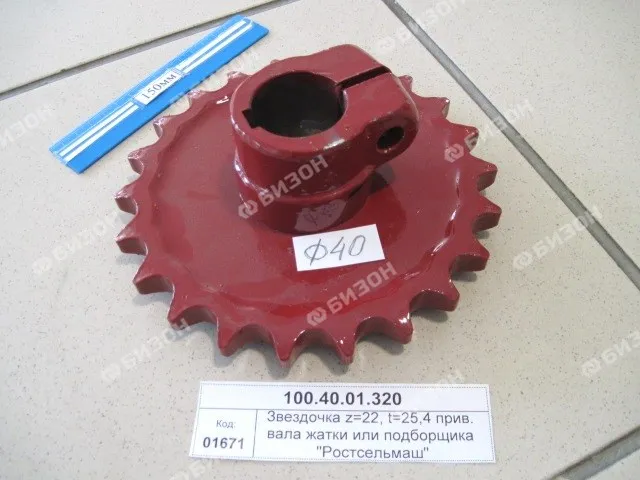 Звездочка (z=22, t=25,4, Ф=40мм-клемм.) прив. вала жатки или подборщика "Ростсельмаш"