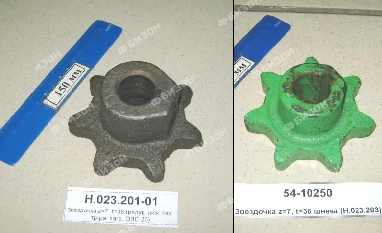 Звездочка (z=7, t=38, Ф=25мм) (редук. ниж. сек. тр-ра. загр. ОВС-25)