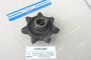 Звездочка (z=7, t=38, Ф=20мм) верхн. вала элеватора (Ф20мм) "Ростсельмаш"