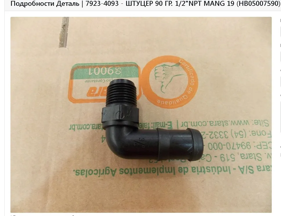 Уголок соединит. (90° D=19 х К1/2"M NPT) (Император 3100/3100E, 3000/4000 Стара) HB05007590
