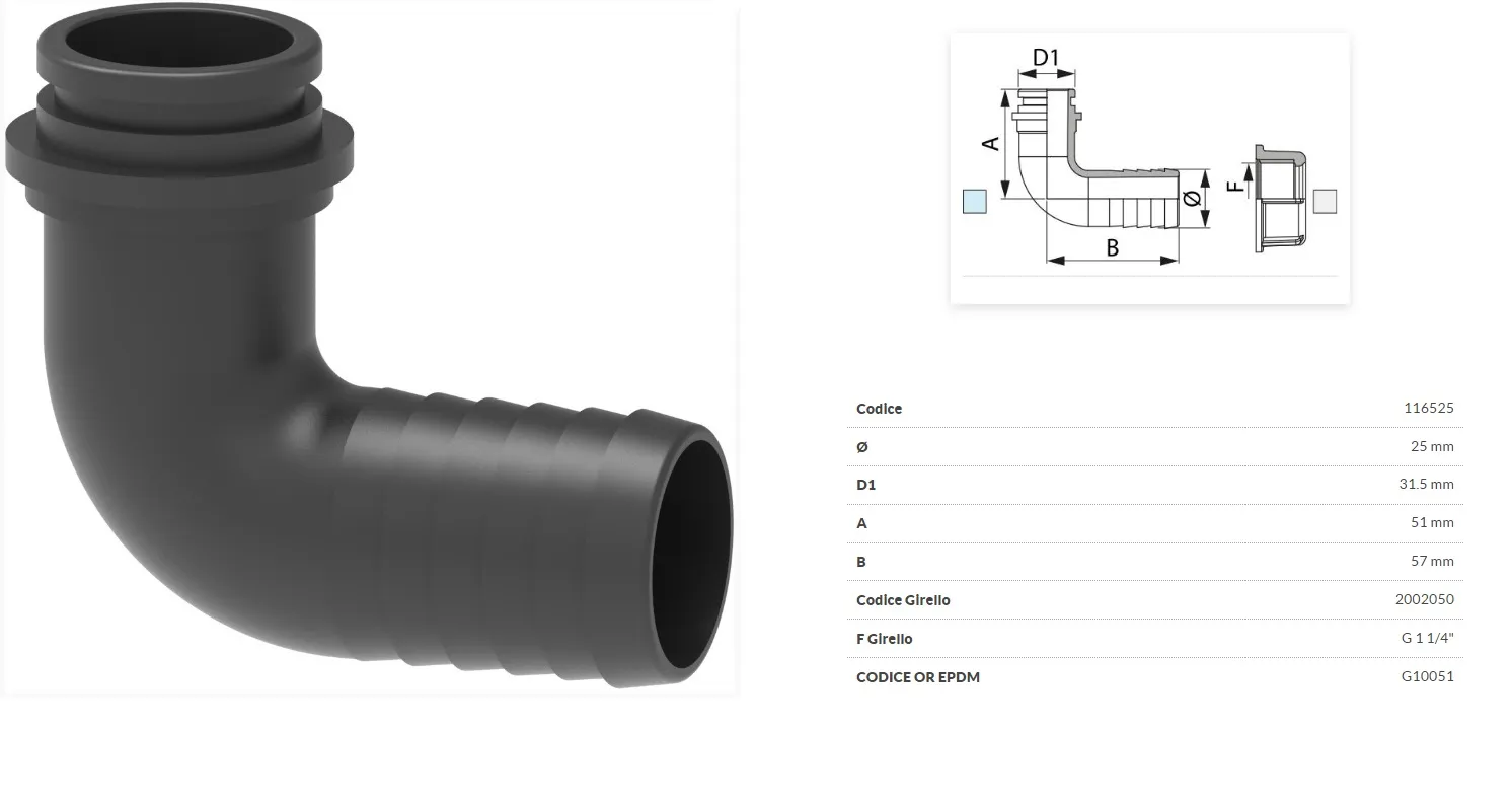 Уголок соединит. (90° D=25 х D=24,5 под гайку G1") (Опрыскиатели Гаспардо) 116425