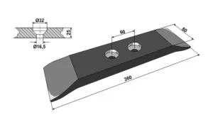 Нож барабана левый (болт- М16х1,5) (РСМ-1401/1403) "Ростсельмаш"