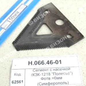 Сегмент режущего аппарата с насечкой (КЗК "Палессе") Фотв.=6мм (Симферополь)