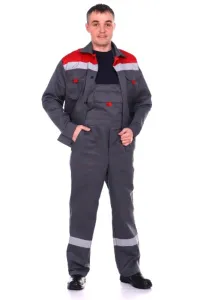 Костюм Эксперт (куртка, полукомбинезон) серый/красный, СОП, р-р 68-70/170-176