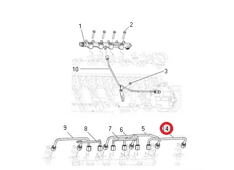 Топливопровод форсунки 6-го цилиндра (Император 3100E Стара)(MWM)