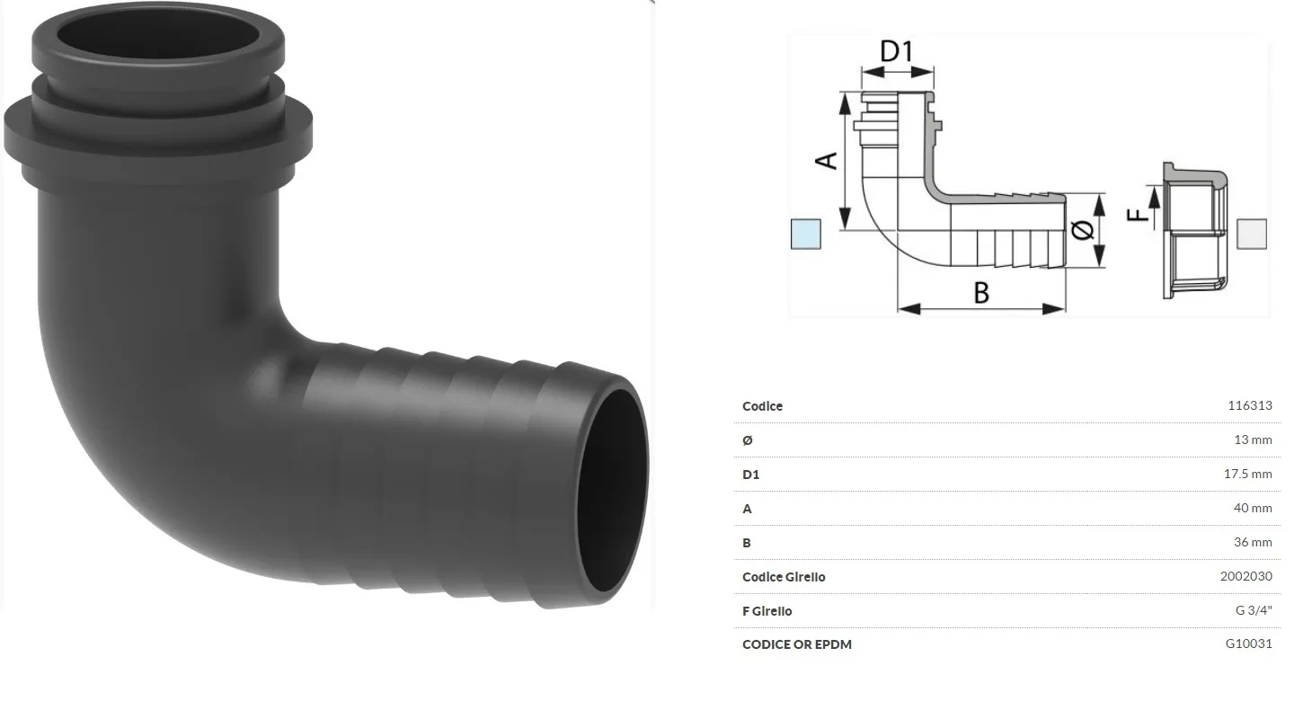 Фитинг угловой 90 гр. насоса D-174 под накидную гайку (Imovilli Pompe)