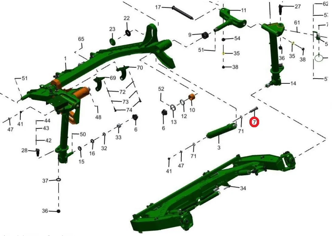Палец Ф28х128 вертикальн. раскоса задн. навески (MT555-95B/D, MF7624)