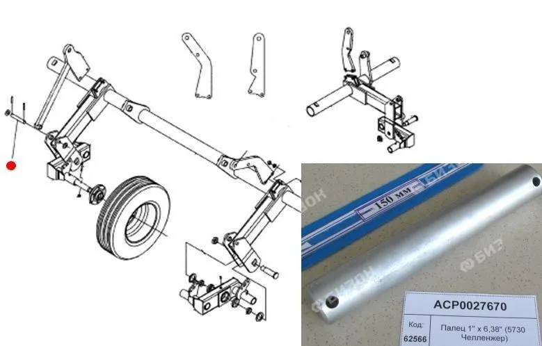 Палец с фиксирующей пластиной FG D60х305/340 M60х2 (с резьбой) (Рубин, Торит, плуги Лемкен)