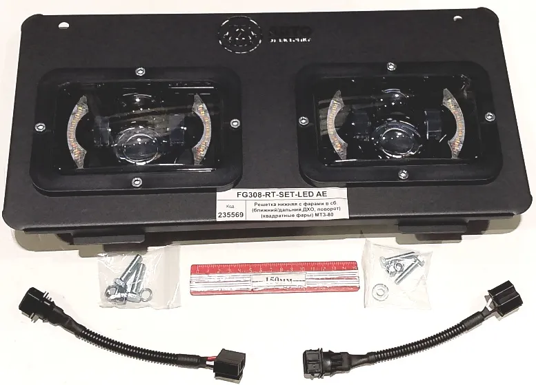 Решетка нижняя с фарами в сб. (ближний/дальний,ДХО, поворот) (квадратные фары) МТЗ-80