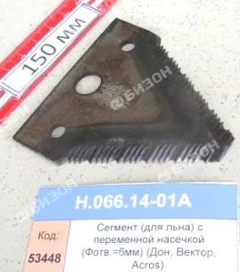 Сегмент режущего аппарата с насечкой (Фотв.=6мм) Дон, Вектор, Акрос - аналог