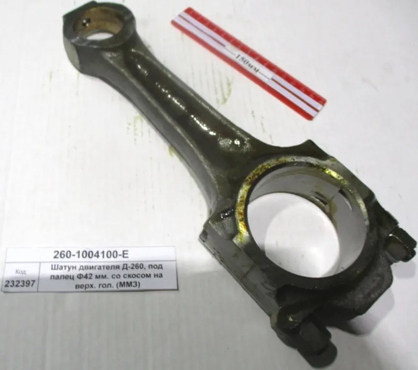 Шатун двигателя Д-260, под палец Ф42 мм. со скосом на верх. гол. (ММЗ)