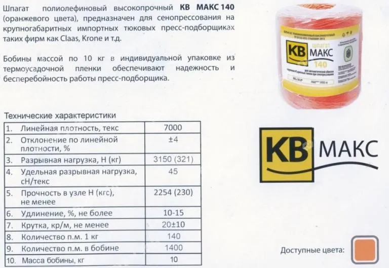 Шпагат п/п 2000 текс сеновязал.2500м (1бухта=5кг) Kasmaland SUPER NORMAL