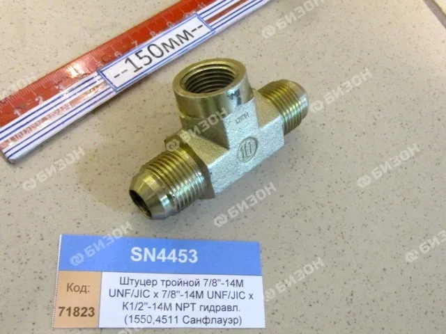 Штуцер тройной 13/16"-16M UNF/ORFSх13/16"-16M UNF/ORFSх13/16"-16F UNF/ORFS (MT700B/C/D/E,800B/C/E)