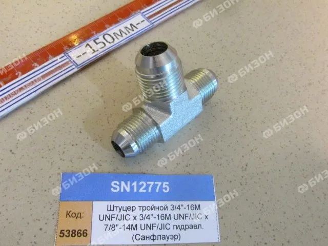 Штуцер тройной 3/4"-16M UNF/JIC х 3/4"-16M UNF/JIC х 7/8"-14M UNF/JIC гидравл. (Санфлауэр)