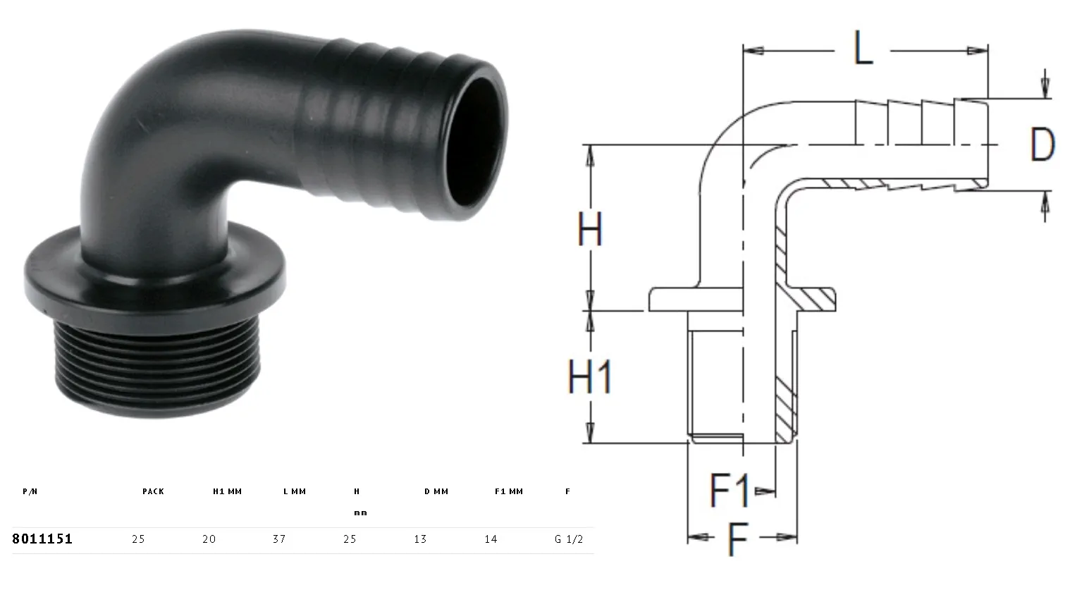 Штуцер 1/2" D=13мм (угловой - 90° фильтра напорного (Geoline) (без уплотн. кольца)