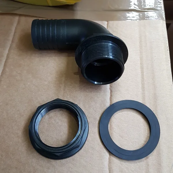 Штуцер 1 1/2" Ф=38 мм (угловой - 90°) (с проходной гайкой и уплотн. кольцом)