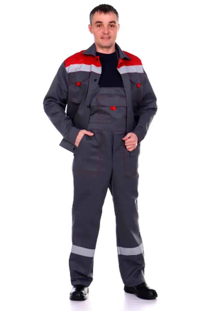 Костюм Эксперт (куртка, полукомбинезон) серый/красный, СОП, р-р 64-66/170-176