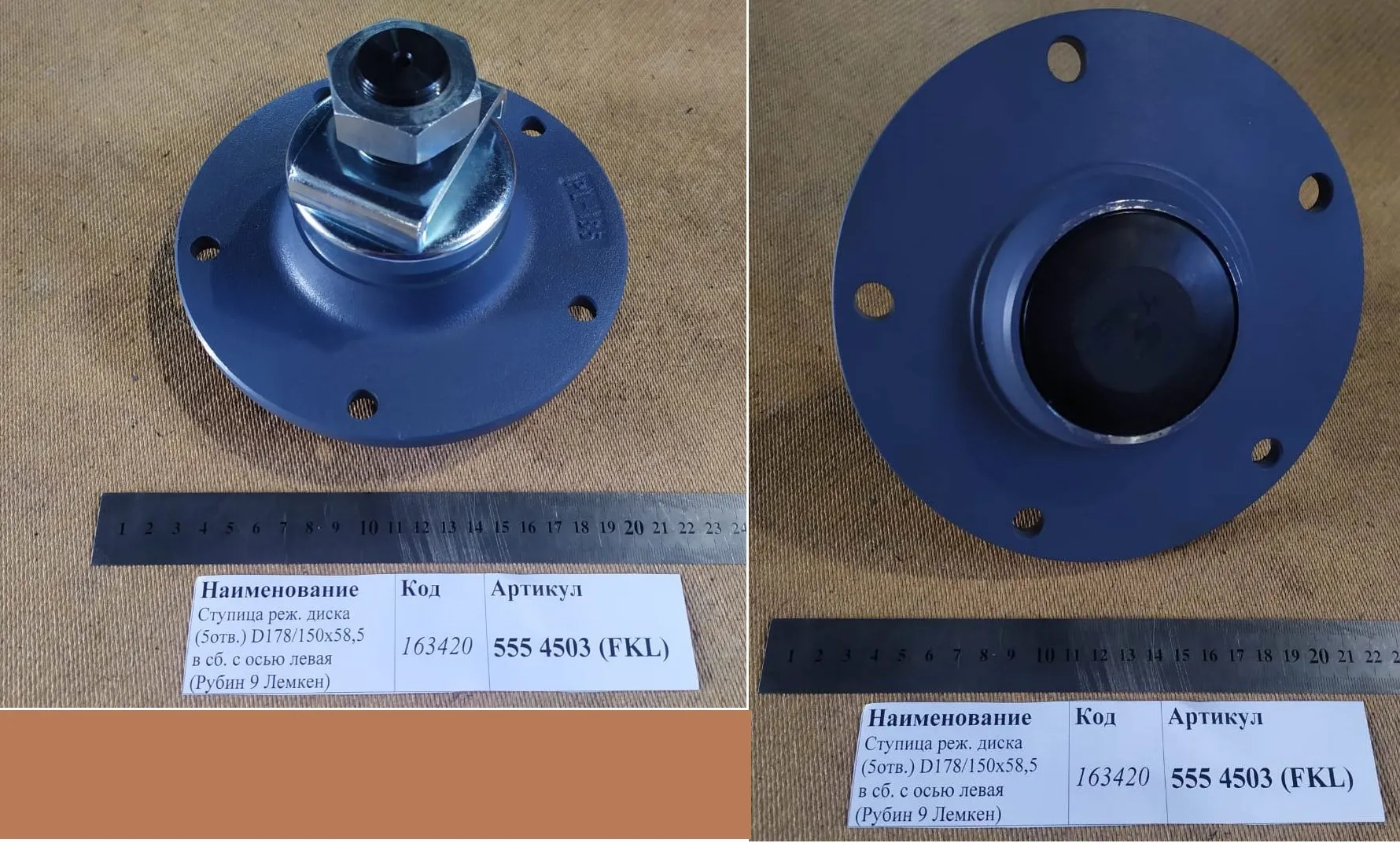 Ступица режущего диска (5отв.) D178/150х58,5 в сб. с осью правая (Рубин 9 Лемкен) 555 4502