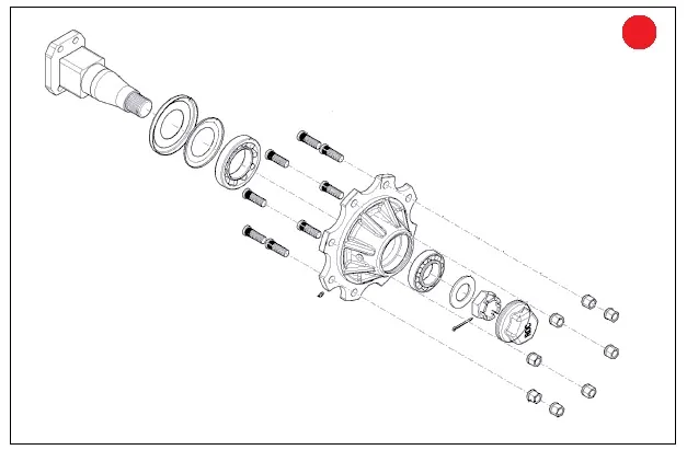 Ступица режущего диска (6отв.) в сб. с осью D30х100 М24х1,5 левая нов. обр. (Гелиодор Лемкен) (анало