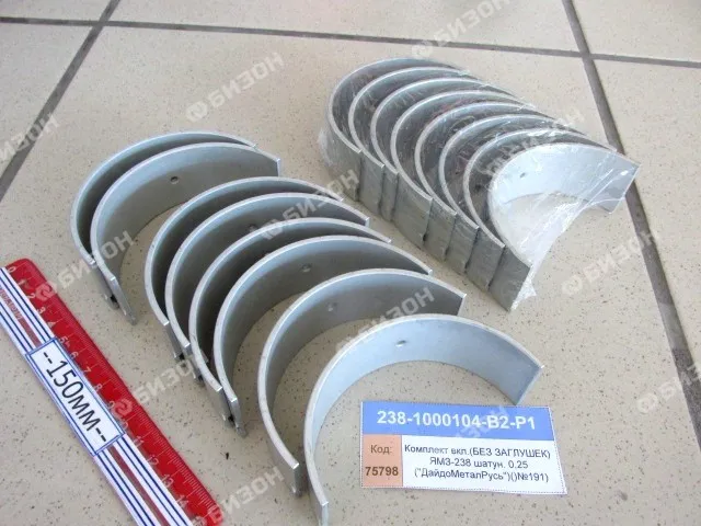 Комплект вкладышей(БЕЗ ЗАГЛУШЕК) ЯМЗ-238 шатун. 0,25 ("ДайдоМеталРусь")()№191)