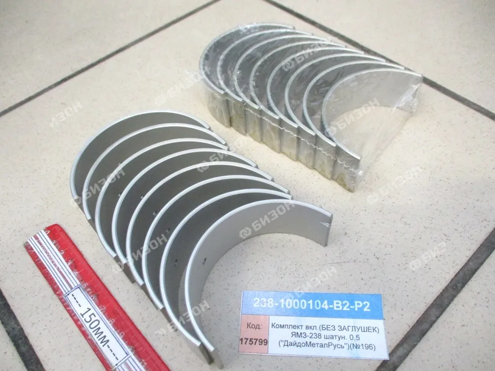 Комплект вкладышей(БЕЗ ЗАГЛУШЕК) ЯМЗ-238 шатун. 0,5 ("ДайдоМеталРусь")(№196)