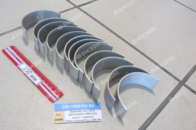 Комплект вкладышей(БЕЗ ЗАГЛУШЕК) ЯМЗ-236 шатун. номинал ("ДайдоМеталРусь")(№148)