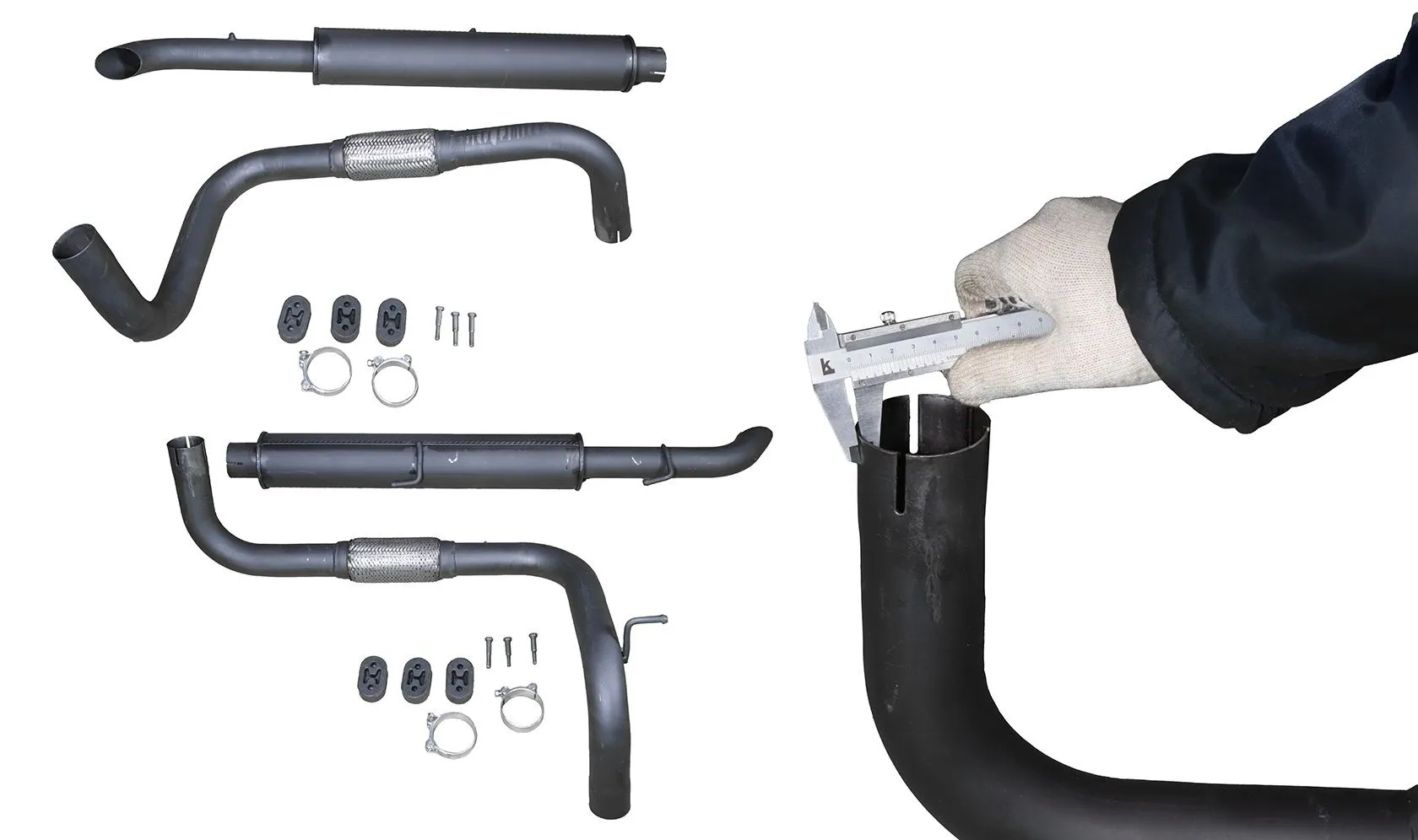 глушители с хомутом на МТЗ, ЮМЗ, Т-40 – короткие (L=930), средние (L=1150) и длинные (L=1370).