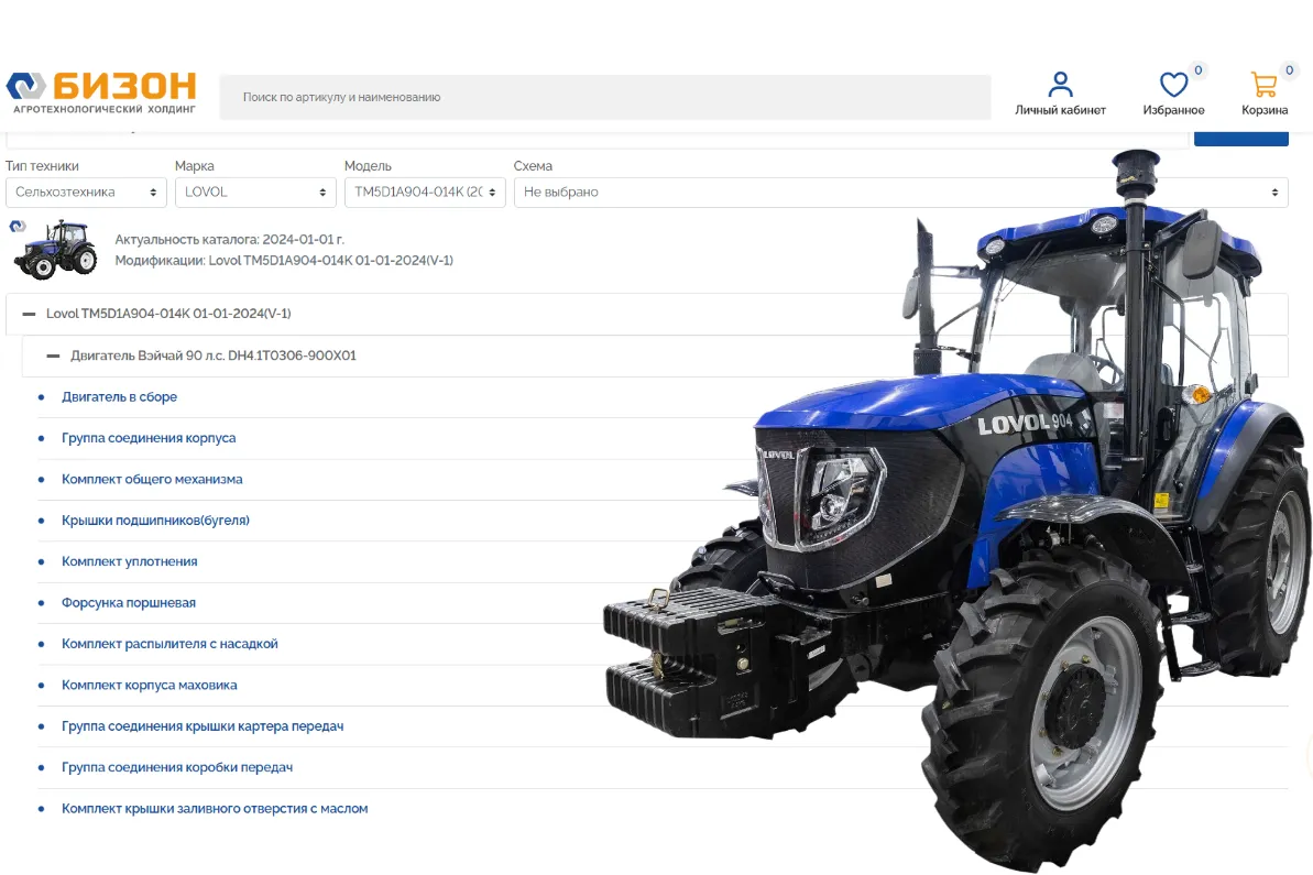 Что нужно для быстрого, самостоятельного поиска запчасти? Достаточные теоретические знания конструкции трактора и Графический каталог интернет-магазина компании «Бизон».