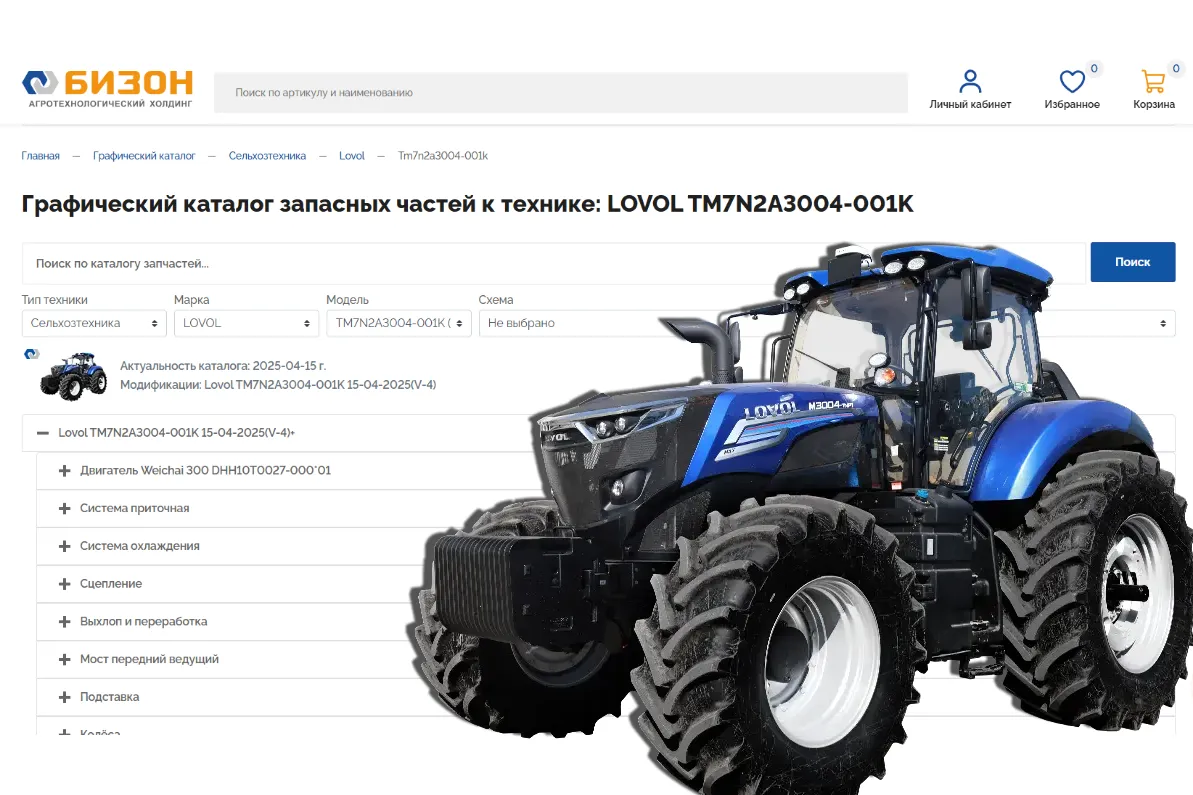 Компания «Бизон» не стоит на месте в стремлении улучшить сервисы интернет-магазина. Потому мы всегда в процессе подготовки и публикации графических каталогов запчастей к технике.