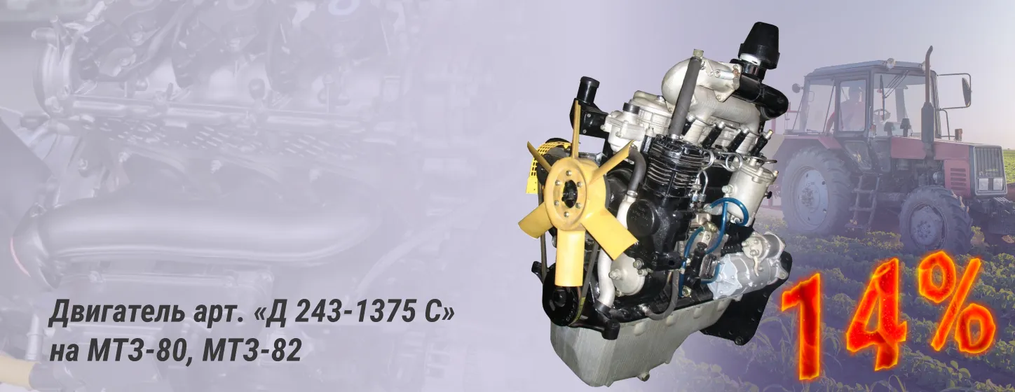 Акция от компании «БИЗОН»! Цена на двигатель Д-243 на технику МТЗ-80, 82 снижена на 14 %. Старая цена до начала акции — 349 990 руб. с НДС. В период действия акции цена на двигатель Д-243-1375С будет составлять 299 900 руб. с НДС.